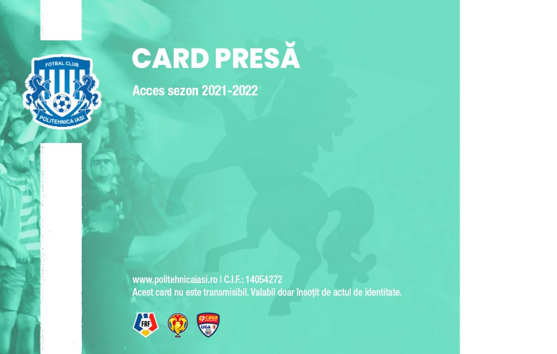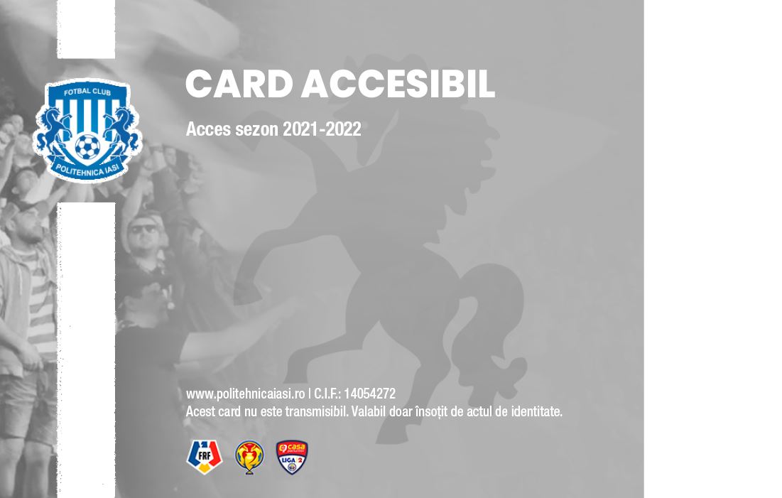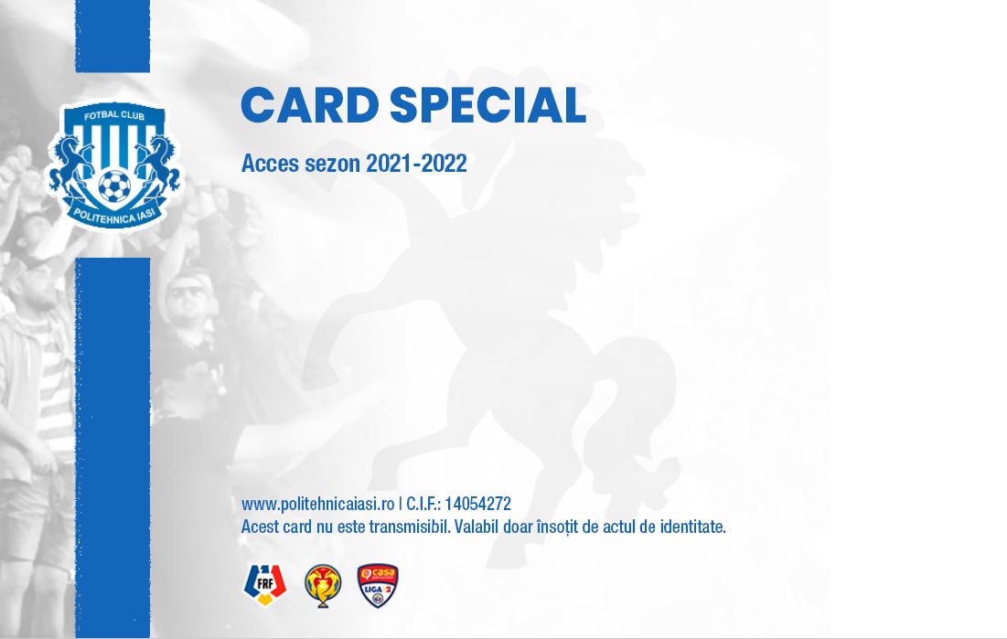 Abonamentele și biletele la meciuri vor putea fi achiziționate, începând de duminică, 1 august 2021, de la magazinul oficial al clubului din Iulius Mall parter, program zilnic 12.00-20.00. De asemenea, cardurile pot fi rezervate și achitate online chiar acum, pe https://bilete.politehnicaiasi.ro/ și, apoi, ridicate personal de la magazin.
