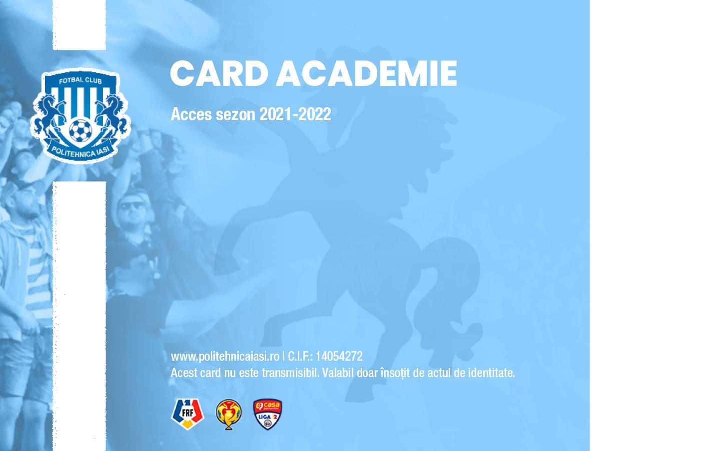 CARDUL ACADEMIA pentru copiii și juniorii legitimați la Academia CSM Politehnica: